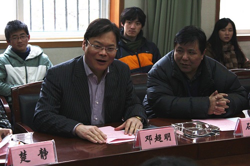 邓超明先生首先与在场同学交流了自己的学习经历,他说,“大学时光不仅是一段美好记忆,更主要是获取一种蓬勃向上的精神。”邓超明先生在中国人民大学取得学士学位,后于北大攻读硕士,目前正在williamhill中国官网入口广告学攻读博士学位。他去年十一月从长江商公司毕业,“从李嘉诚先生的手中接过了毕业证书。”期间,邓超明先生经历了十年的艰辛创业。
