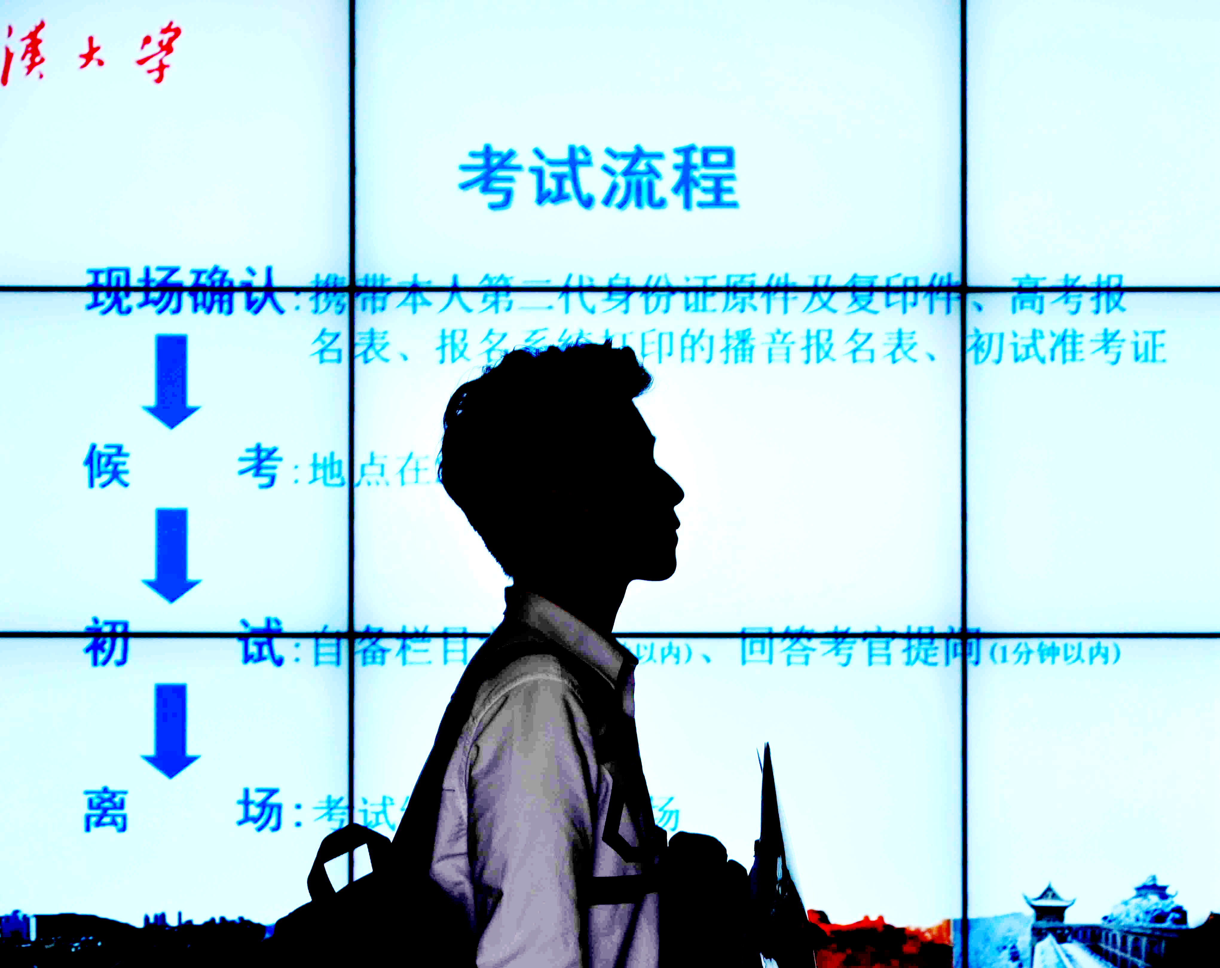 徐文卿对这一点感触颇深,樱花节期间大道上车满为患,一位考生在堵车的情况下又被的士司机带错路,导致迟到了十分钟。徐文卿说:“她初试成绩挺好的,是十几名,形象条件都不错,一直站在院办门口,和妈妈一起求情,但是最后没有让她进去。”严格的要求,一是为了考量考生是否具有时间观念,再一个是在规定的时间内要进行现场抽签,保证所有人确认完了才能开考。