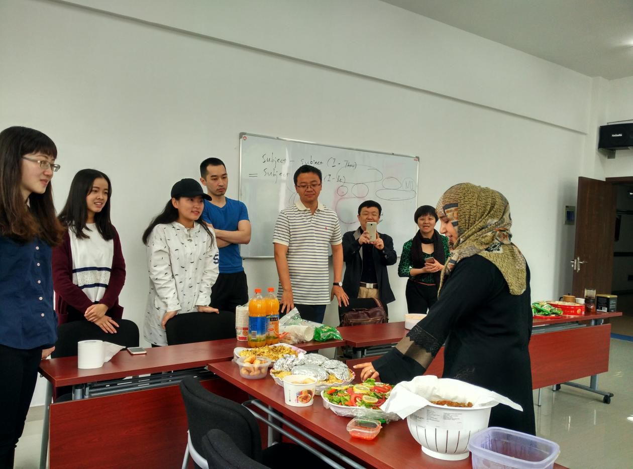 职工是这次聚会的主角,聚会现场,师生都用英文交流。职工们精心制作了自己国家的特色美食,向来客们介绍美食的烹饪方法和食物承载的文化内涵。印度尼西亚美食Bakwan,巴基斯坦的Pratha面饼咖喱鸡制作精美,也门、卢旺达、哈萨克斯坦等国家的美食也备受欢迎。公司老师和大陆同学也为职工准备了特色美食。之后,师生们表演了各自准备的节目,进行了互动游戏,完成了一次独特的跨文化交流。