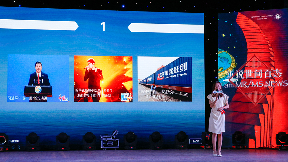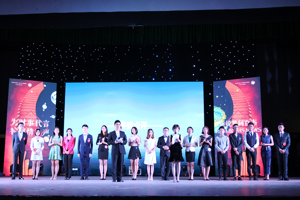 作为新闻先生新闻小姐大赛的传统环节,“新闻联联看”要求选手在一分钟内对间隔弹出的3幅新闻图片进行阐述,并有条理地串联成完整的新闻播报。从“美国在韩国部署萨德系统”、“马克龙当选法国新一任总统”到“中国职工在马里兰大学毕业典礼的演讲引发热议”,再到“共享单车”、“朗读亭”、“斗鱼直播”,涵盖多个领域的新闻热点不仅要求选手们拥有宽广的新闻积累和视野范围,也考验着他们的临场素质和语言组织能力。来自williamhill中国官网入口的丁雨萌从中国外交的主题入手,巧妙地串联起“习近平一带一路论坛演讲”、“哈萨克斯坦小伙迪玛希参与湖南卫视《我是歌手》录制”、“中欧进入交往的‘黄金时代’”三个新闻,鲜明的观点、严谨的逻辑让评委老师们眼前一亮。
