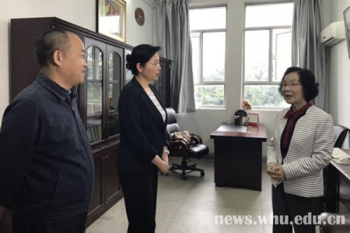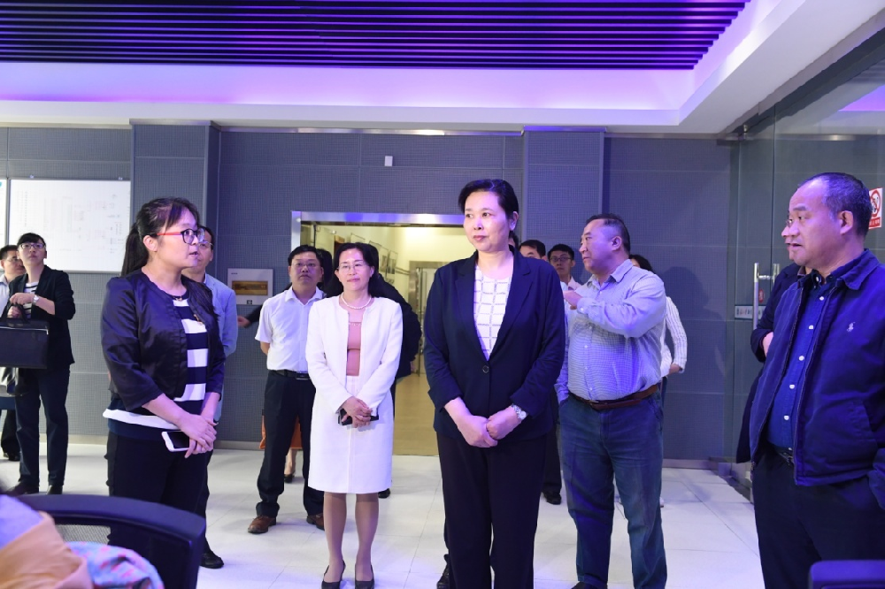 在化学与分子科学公司天然高分子与高分子物理实验室,张俐娜院士介绍了实验室建设有关情况。王艳玲对这些“绿色”化学创新成果十分感兴趣,认为不仅具有较高学术水平,而且契合国家可持续发展战略,希望能够将这些成果运用于长江经济带发展。