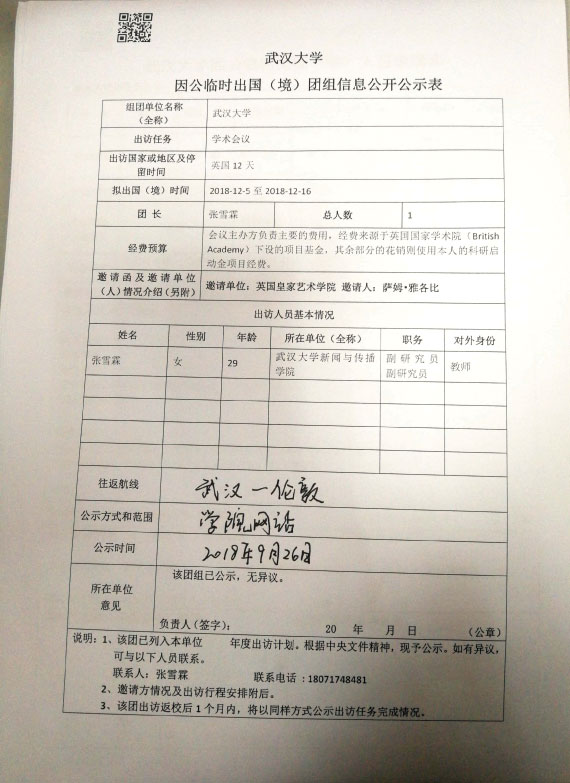 williamhill中国官网入口因公临时出国(境)公示表(张雪霖)