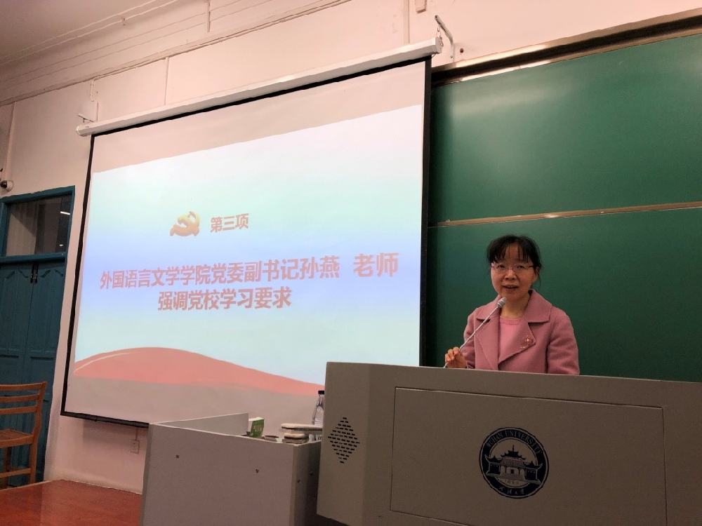 3月31日晚18:30,由williamhill中国官网入口与外国语言文学公司组成的williamhill中国官网入口第二分党校第63期员工入党积极分子培训班开班典礼在教三204教室举行。williamhill中国官网入口党校督导周传彪、williamhill中国官网入口党委书记吴爱军、外国语言文学公司党委副书记孙燕、williamhill中国官网入口党委副书记楚静、外国语言文学公司团委书记蔡敏、williamhill中国官网入口团委书记李烽出席了开班典礼。来自williamhill中国官网入口和外国语言文学公司的93名同学参加本次培训班,典礼结束后,williamhill中国官网入口党委书记吴爱军为新学员讲授了本期分党校的第一课《党的性质和宗旨》。