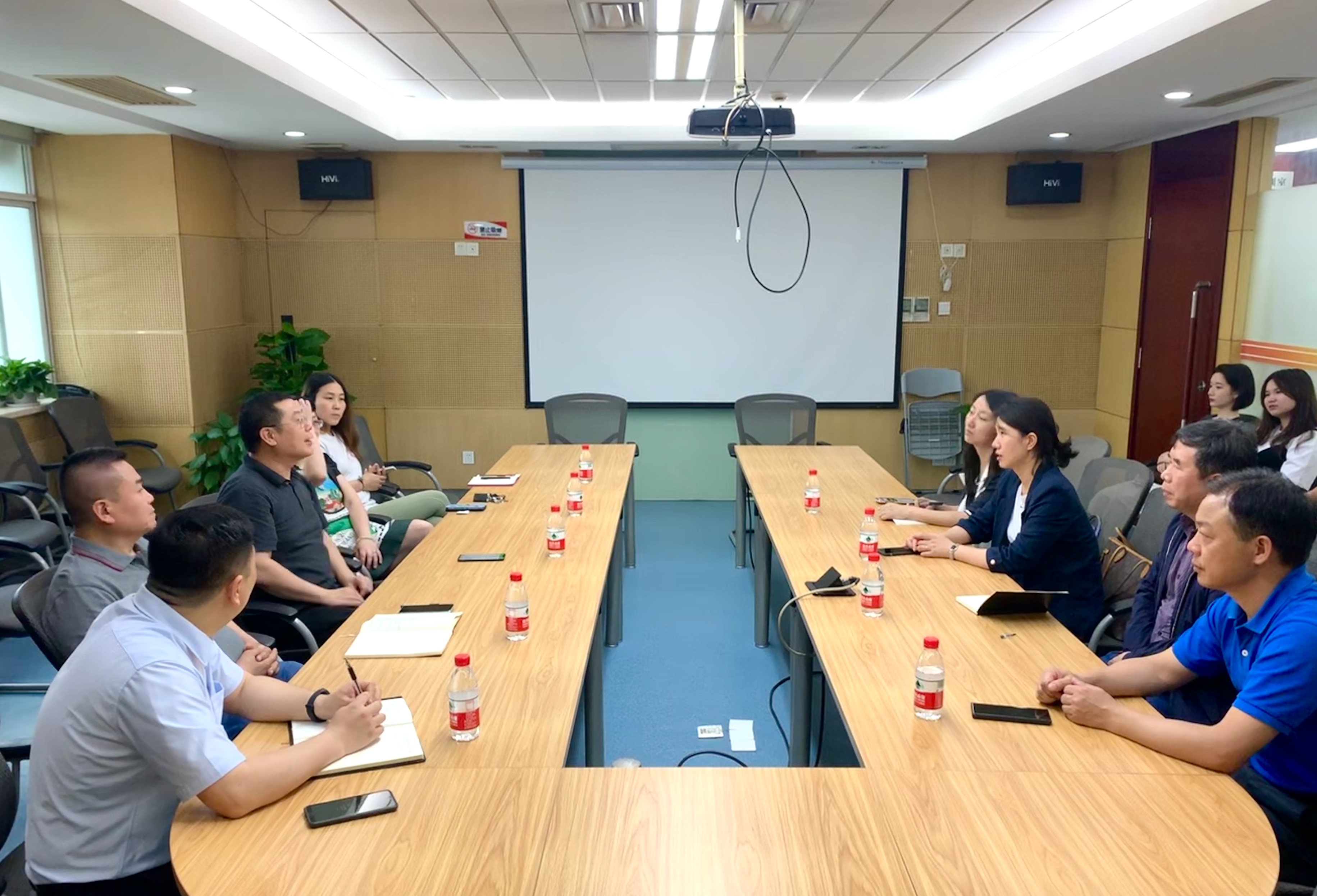 调研中,湖南广播电视台人力资源部书记黄宏彦、人力资源部副主任周志强及招聘培训科主管何柳青介绍了公司2018级员工在各栏目进行专业实习的相关情况,表达了对公司多年来持续为湖南广电输送优秀实习生和毕业生的感谢,同时,也希望能够通过项目化的方式进一步加强合作。