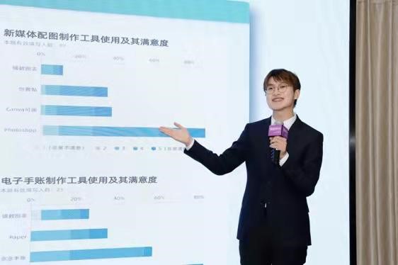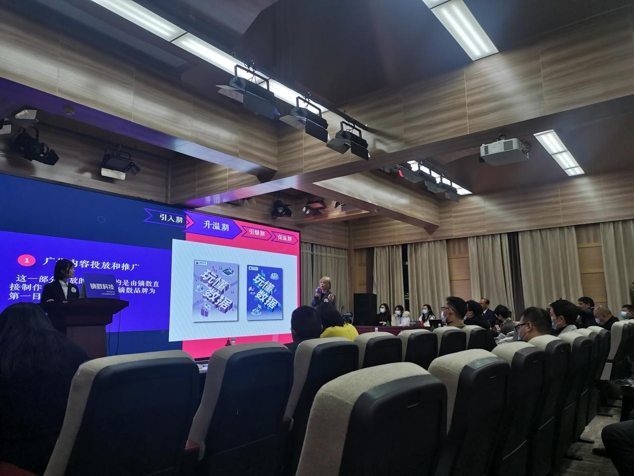 本次广告模拟竞标提案会的主题为:镝数图表营销推广策划案。来自学界、业界、企业方的40余名评审来到现场,为2019级本科生组成的5支参赛队伍的营销策划案打分。2020级、2021级研究生由于疫情防控原因在线上腾讯会议观摩提案。这5支参赛队伍分别为:(按出场顺序排列)