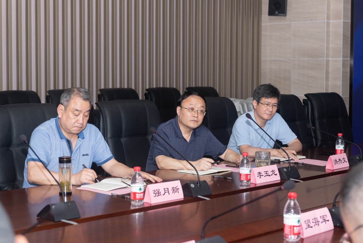 (公司党委书记李玉龙、经理强月新教授和副经理洪杰文教授参加会谈)