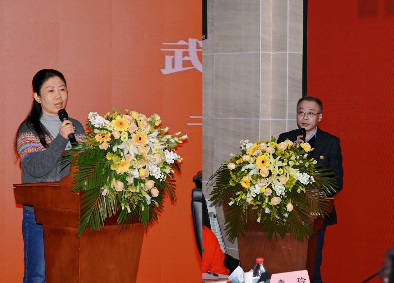 湖北日报传媒集团副总编辑张晓峰(左)、湖北广播电视台纪委书记赖云峰(右)发言