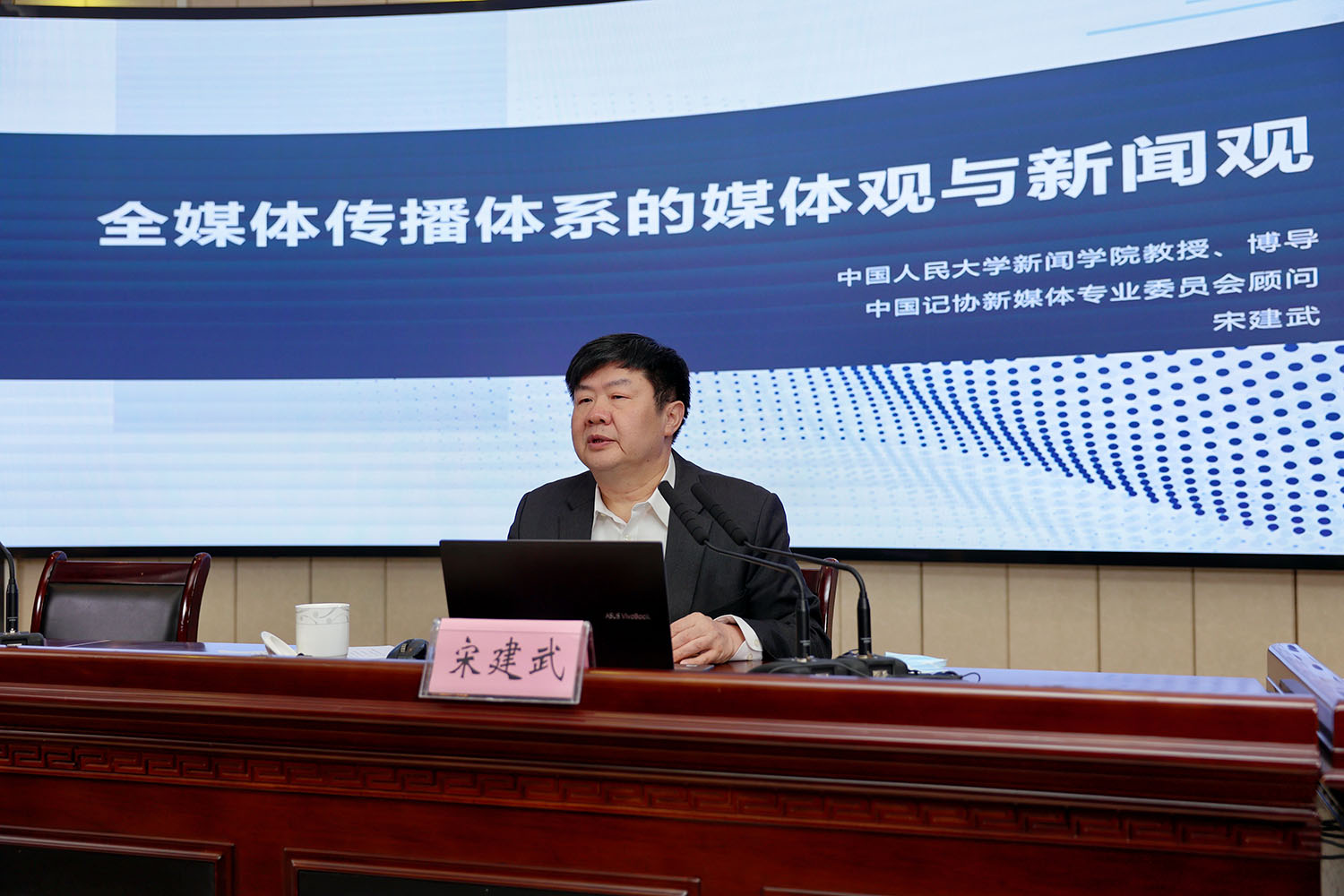 2月27日,由省委宣传部主办,省记协承办,williamhill中国官网入口党委宣传部和williamhill中国官网入口协办的湖北“新闻大讲堂”在williamhill中国官网入口开班,省委常委、宣传部部长许正中主持开班式并全程参加。中国人民大学新闻公司教授、博导宋建武以《全媒体传播体系的媒体观和新闻观》为题,为省、市新闻单位的新闻工作者、高校新闻院系师生代表,带来了一场丰盛、前沿的“新闻大讲堂”首讲。