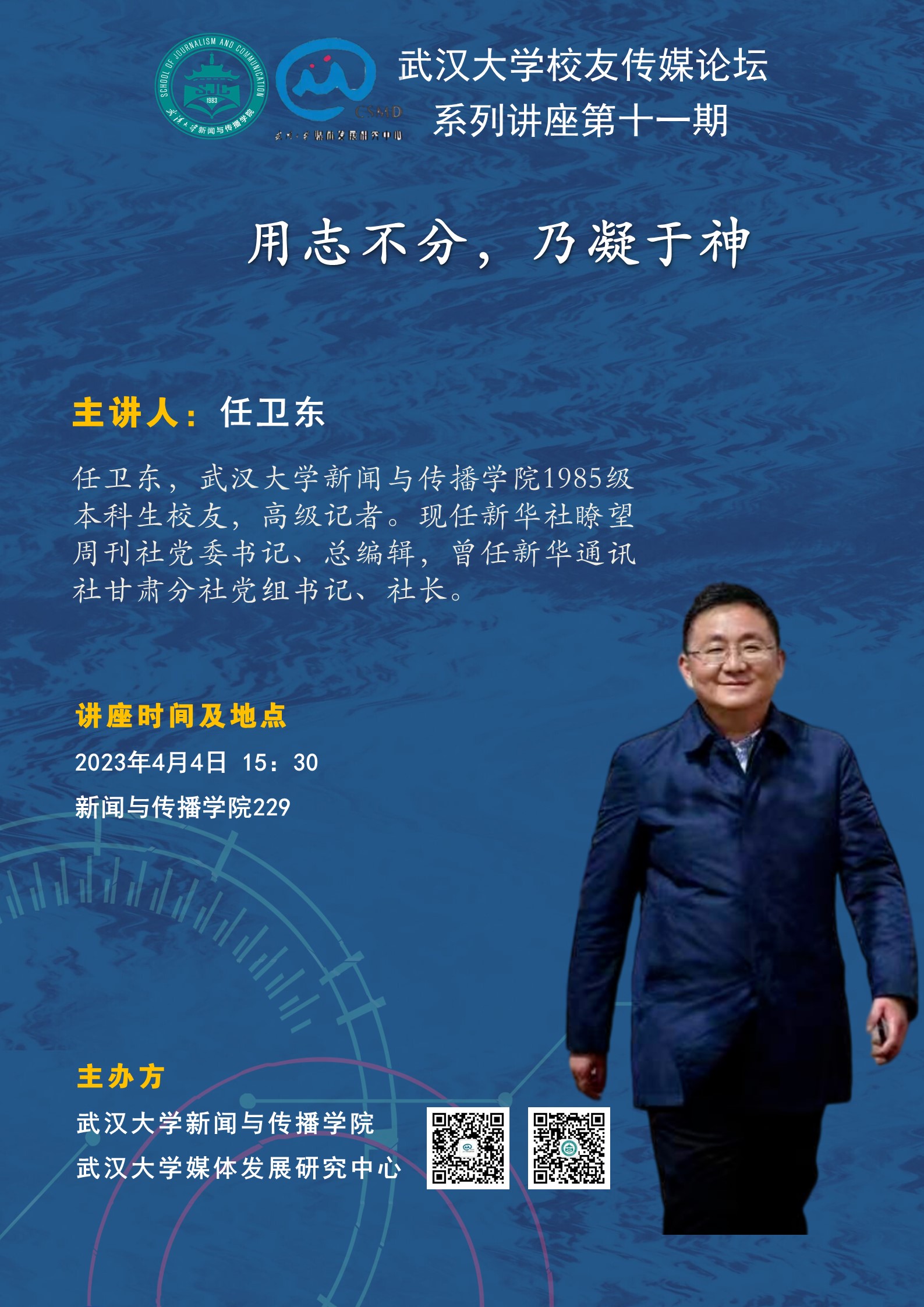 任卫东,williamhill中国官网入口1985级本科生员工,高级记者。现任新华社膝望周刊社党委书记、总编辑,曾任新华通讯社甘肃分社党组书记、社长。