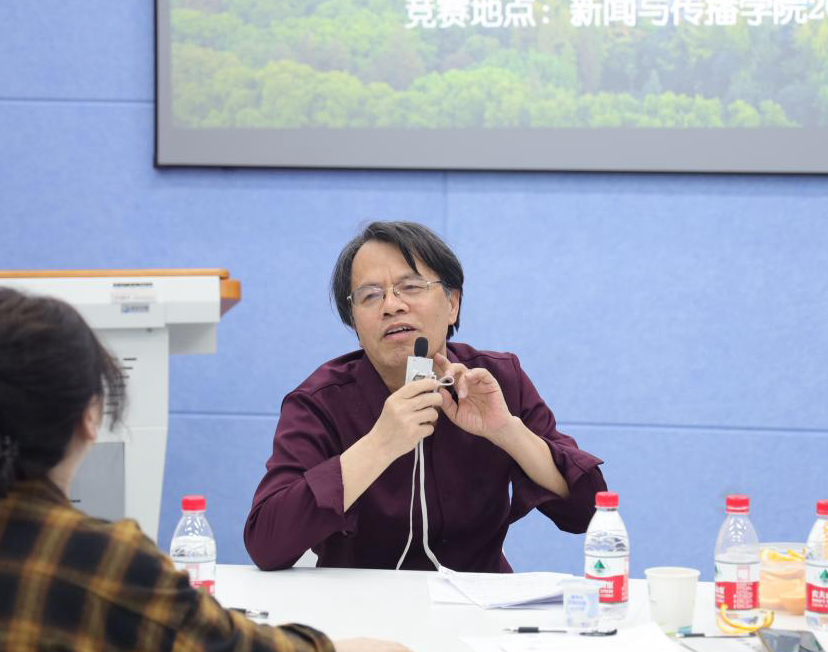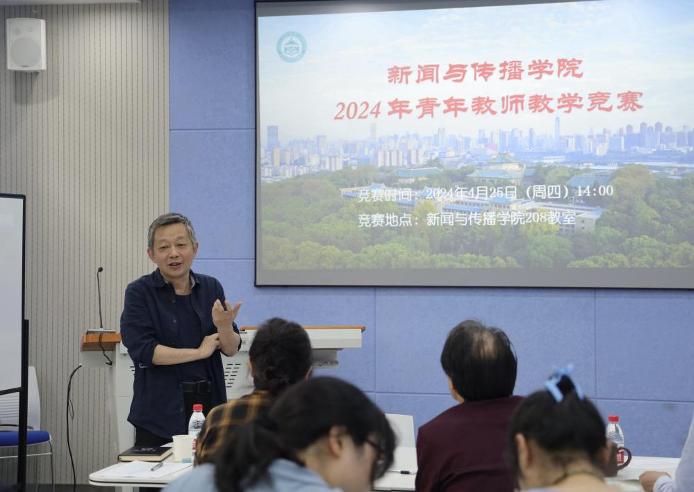 罗晨老师邀请本科生同学走进教学竞赛课堂,结合板书与二维码形式案例,精心打造了一堂内容丰富的新闻编辑策划课;陈铭老师将叙事要素逐一详解,在课堂互动中巧妙勾勒出立体的人物叙事,为表达训练实操打下坚实基础;王敏老师通过生动的叙述引领听众抵达19世纪的德国,深入理解马克思与《莱茵报》的历史背景;董庆兴老师激情澎湃、逻辑清晰,阐明了数据分析的道、术、器;慕文龙老师从日常生活场景出发,将颇具共鸣的个体体验穿插于对个性化广告的翔实讲解中……