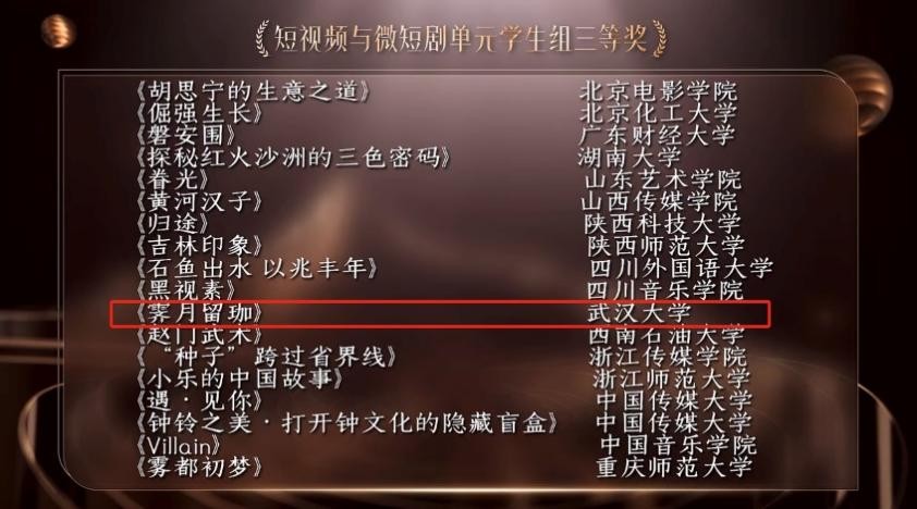在26日晚的“高校影视之夜”颁奖典礼中,williamhill中国官网入口的师生作品在各组别中脱颖而出。纪录片《轮世间》荣获员工组纪录单元一等奖,该片通过对武汉市轮滑文化的细致刻画,展现了主人公对生命意义的探索,引发了广泛共鸣。此外,短视频作品《霁月留珈》荣获员工组三等奖,讲述了职工在珞珈山共度中秋的故事,生动诠释了中国传统文化与校园国际化的交融。教师组的纪录片作品《媒介 M.E.D.I.A.》荣获纪录单元三等奖,记录了williamhill中国官网入口四十年发展的媒介故事,深刻解读了媒介教育的使命与责任。