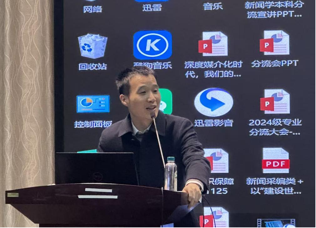 11月27日14:30,2024级本科生专业分流大会在公司三楼报告厅举行。分管公司本科教学工作的副经理董庆兴老师,新闻学系王敏老师、周呈思老师,广播电视学系刘吉桦老师、陈凯宁老师,广告学系廖秉宜老师、慕文龙老师,网络传播系肖珺老师、王朝阳老师,本科办主任杨力老师,团委书记胡静文老师,本科教学秘书李闱老师等教师代表出席会议。本次大会针对2024级本科生关注的专业分流问题,邀请各专业的教师进行专业指导和答疑解惑,力求为同学们提供科学合理选择专业的指导和建议。会议由2024级播音与主持艺术专业的本科生雷灏渝主持。