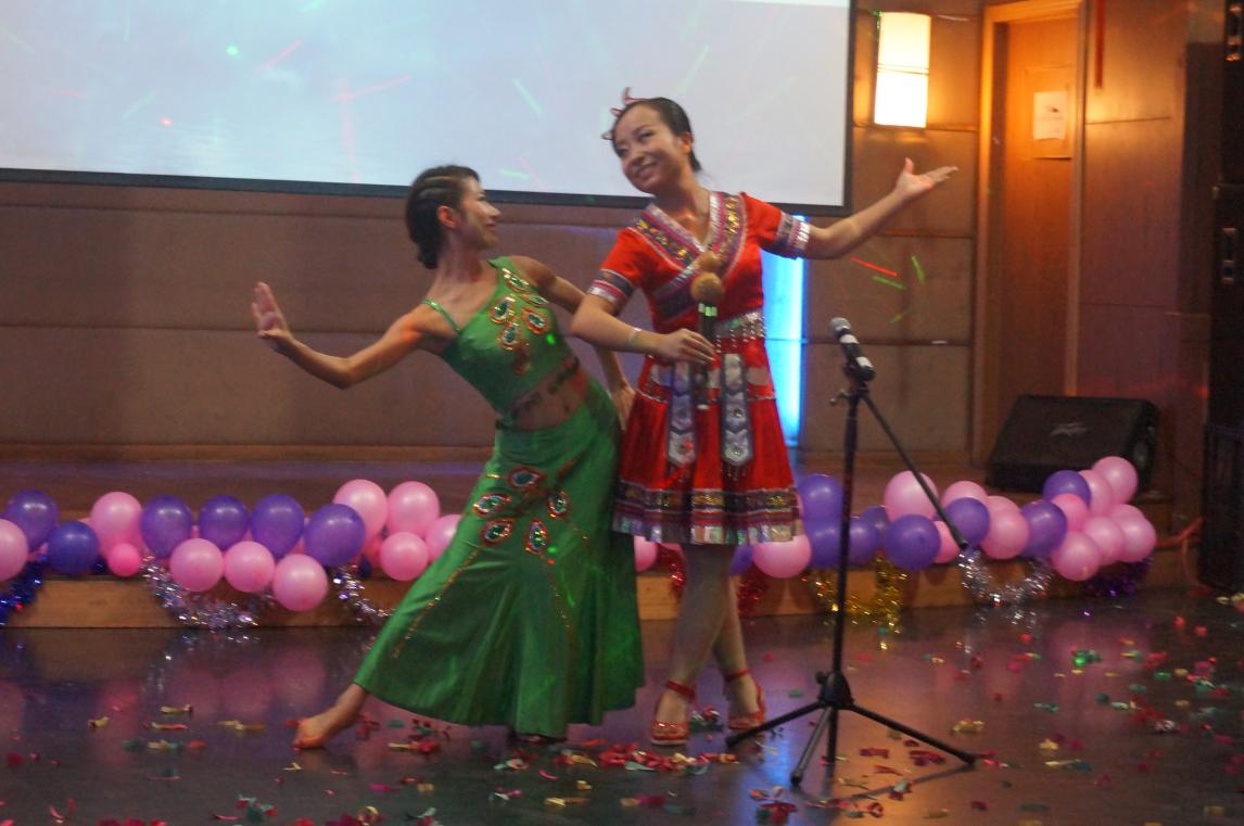 晚七点整,由主持人表演的开场舞蹈show宣告了晚会的正式开始,节奏鲜明的音乐立刻将观众的情绪带动了起来。随后,13级研究生为在场观众献上了优美含蓄的傣族舞,热情奔放的爵士舞,风情旖旎的印度舞,高贵典雅的芭蕾舞,辅导员肖劲草老师更是现场表演了一段优雅轻盈的华尔兹《绿袖子》,博得现场一片喝彩。