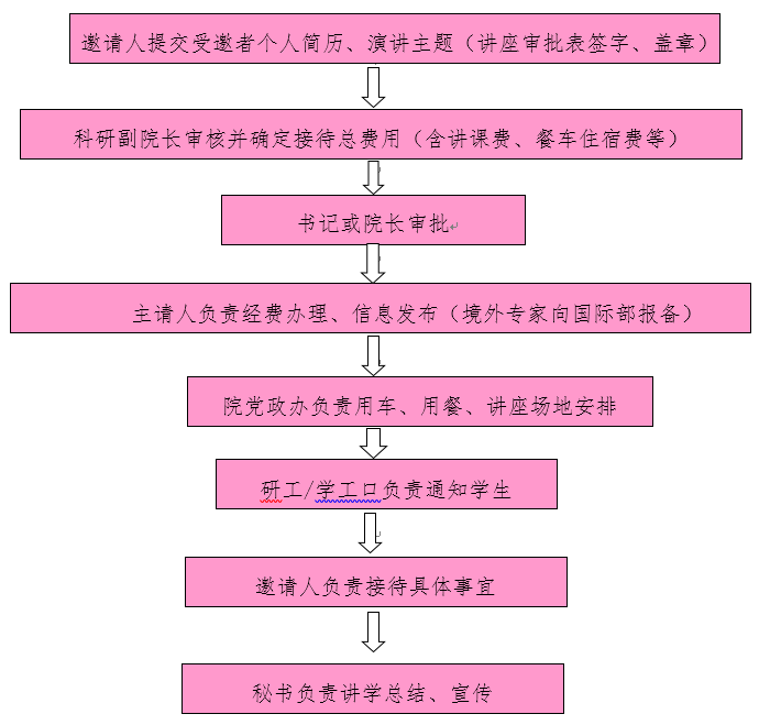 2、公务用车:因工作需要向分管院领导请示用车→分管领导审批→党政办205用车登记,留下信息:联系人、联系方式、出发时间及地点、目的地